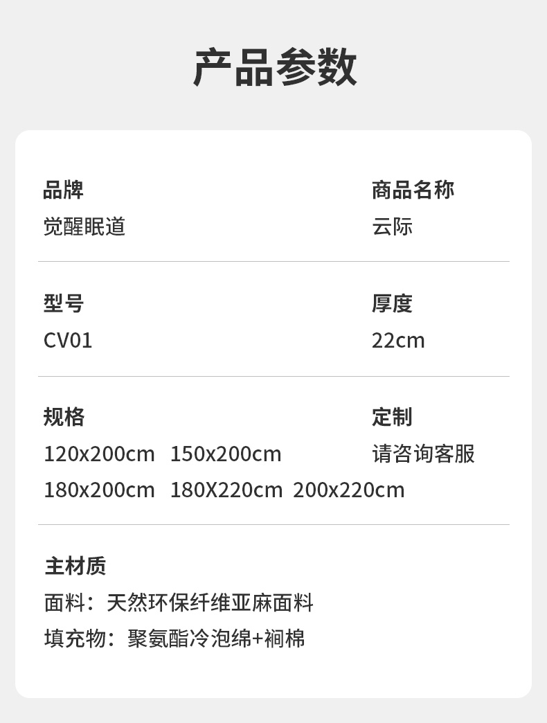 CV01云際 厚度22cm 睡感:微硬80% 指導價:3730.00
